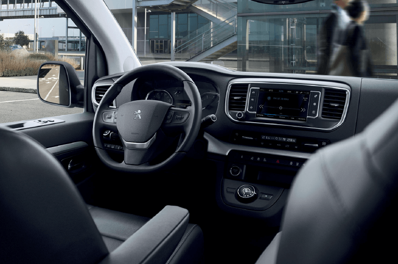 En el interior, el combispace compacto PEUGEOT Traveller juega la carta del confort de conducción. El peldaño facilita el acceso al asiento sobreelevado que domina la carretera y ofrece una posición de conducción digna de las berlinas. El puesto de conducción de diseño depurado y moderno se dota de materiales elegantes y de equipamientos innovadores. El equipamiento ergonómico, como la pantalla digital y la pantalla táctil de 7’’ están siempre al alcance de la mano y a la vista.